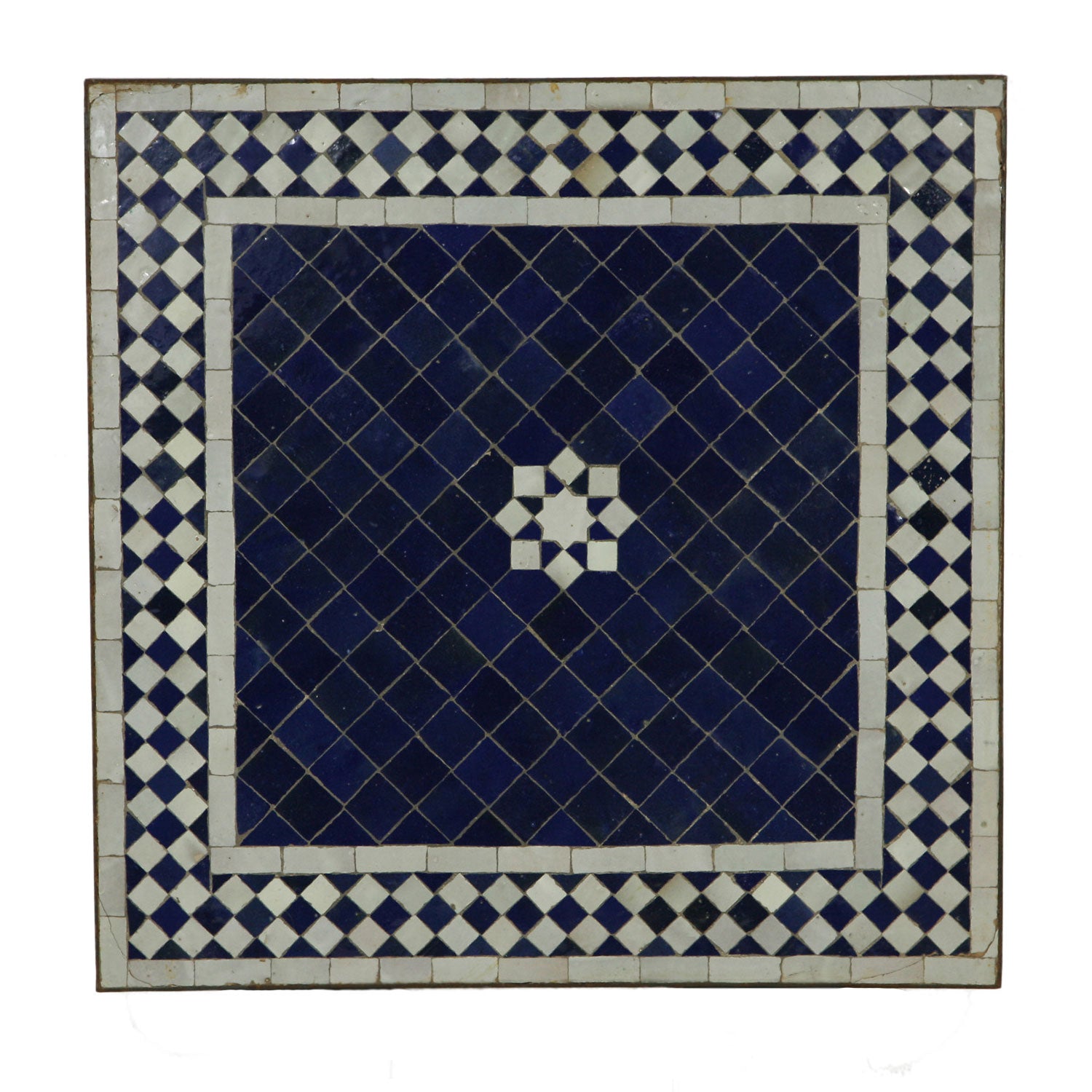 Rauten über Rauten – und in der Mitte ein Stern. Dieser Mosaik-Bistrotisch steckt voller Symbole: Eine auf der Spitze stehende Raute symbolisiert das Auge und soll die Menschen vor dem „bösen Blick“ schützen. Der Acht-Punkte-Stern steht für das Siegel des Propheten und ist damit eines der bedeutendsten Motive des Islam. Hervorzuheben ist auch die handwerkliche Arbeit: Die aus Zellige-Fliesen geschlagenen Mosaiksteine sind nahezu fugenlos, dicht an dicht gelegt. So ist die Oberfläche vollständig glasiert. In den Farben Blau und Weiß zaubert dieser Tisch das Flair des Südens in Ihren Garten, auf Ihre Terrasse.