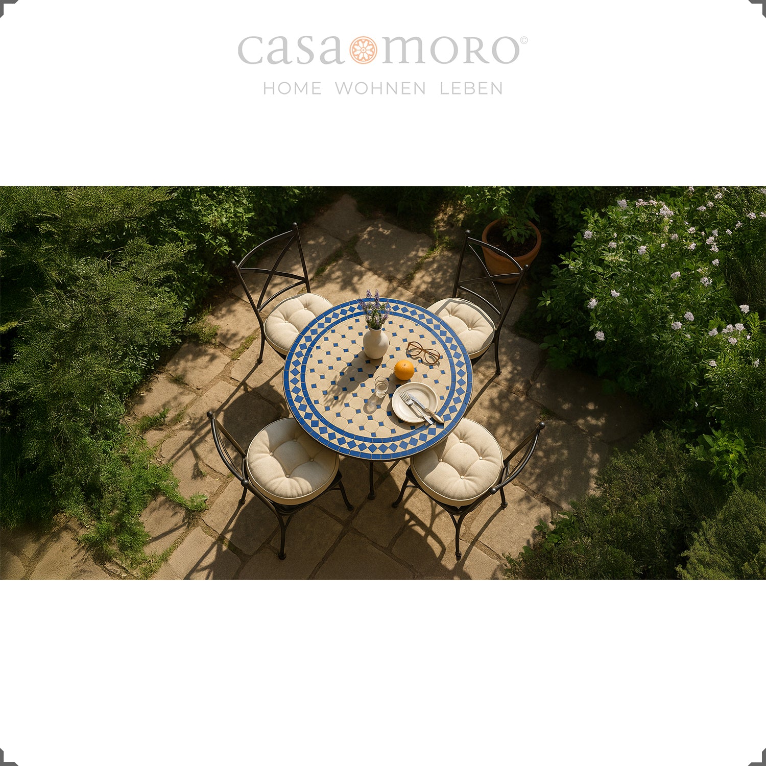 Als maritimer Fliesentisch in der Küche, luftiger Essplatz im Wohnzimmer oder dekorativer Gartentisch im Freien – dieser Tisch bringt mediterrane Leichtigkeit in jede Umgebung.