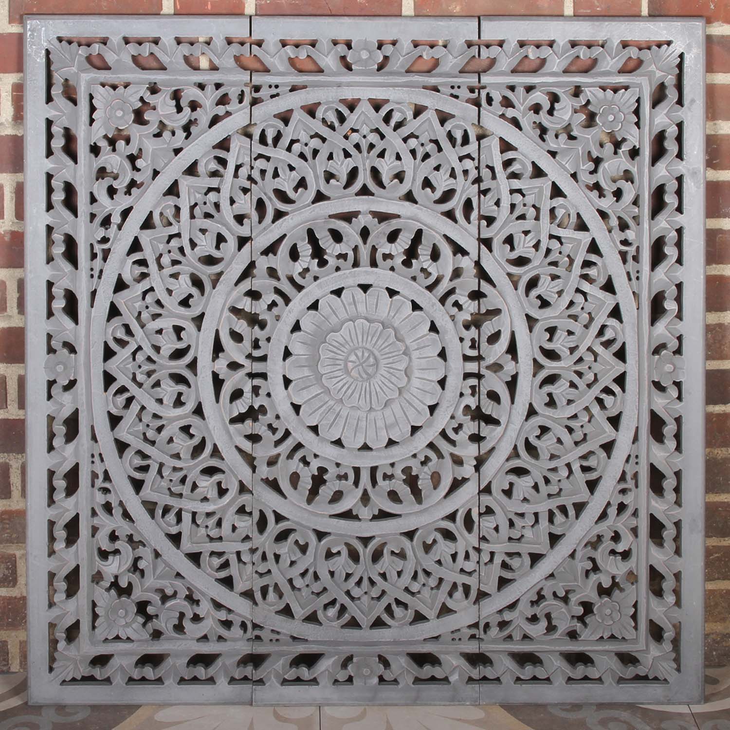 Das orientalisch Mandala Haya 3 teilig ist aus geschnitztem Holz und wird in liebevoller Handarbeit gefertigt - mit viel Liebe zum Detail. Es kann an der Wand befestigt oder an das Fenster gelehnt werden.