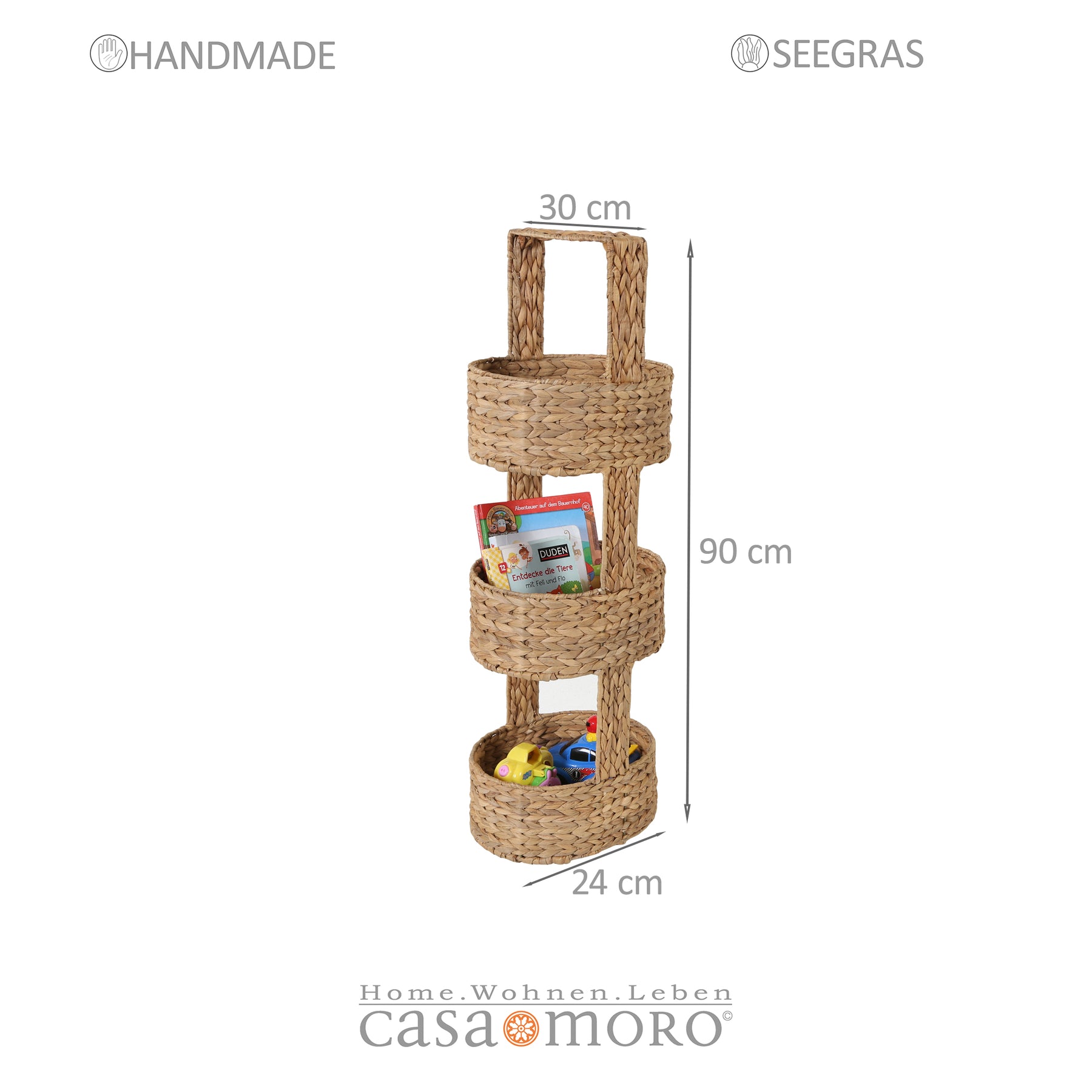 • Besonderheit: Drei Aufbewahrungsflächen, handgeflochten, stabiler Tragegriff