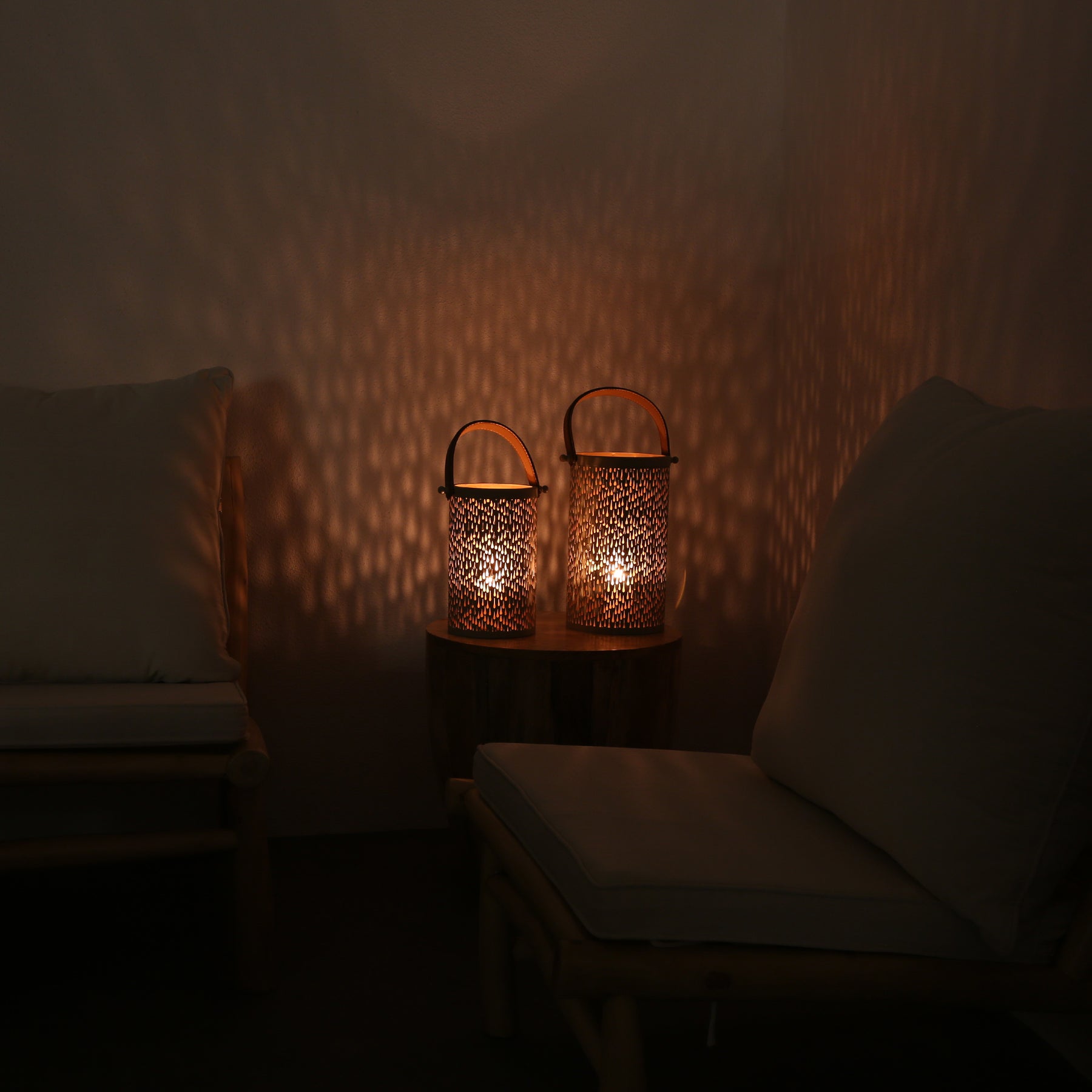 Tropfenweise Atmosphäre - Schaffe eine elegante Atmosphäre mit diesem handgefertigten Laternen-Set, das durch sein tropfenförmiges Lichtmuster beeindruckt. Das filigrane Design sorgt für ein faszinierendes Spiel aus Licht und Schatten und verleiht deinem Zuhause eine einladende und warme Stimmung.