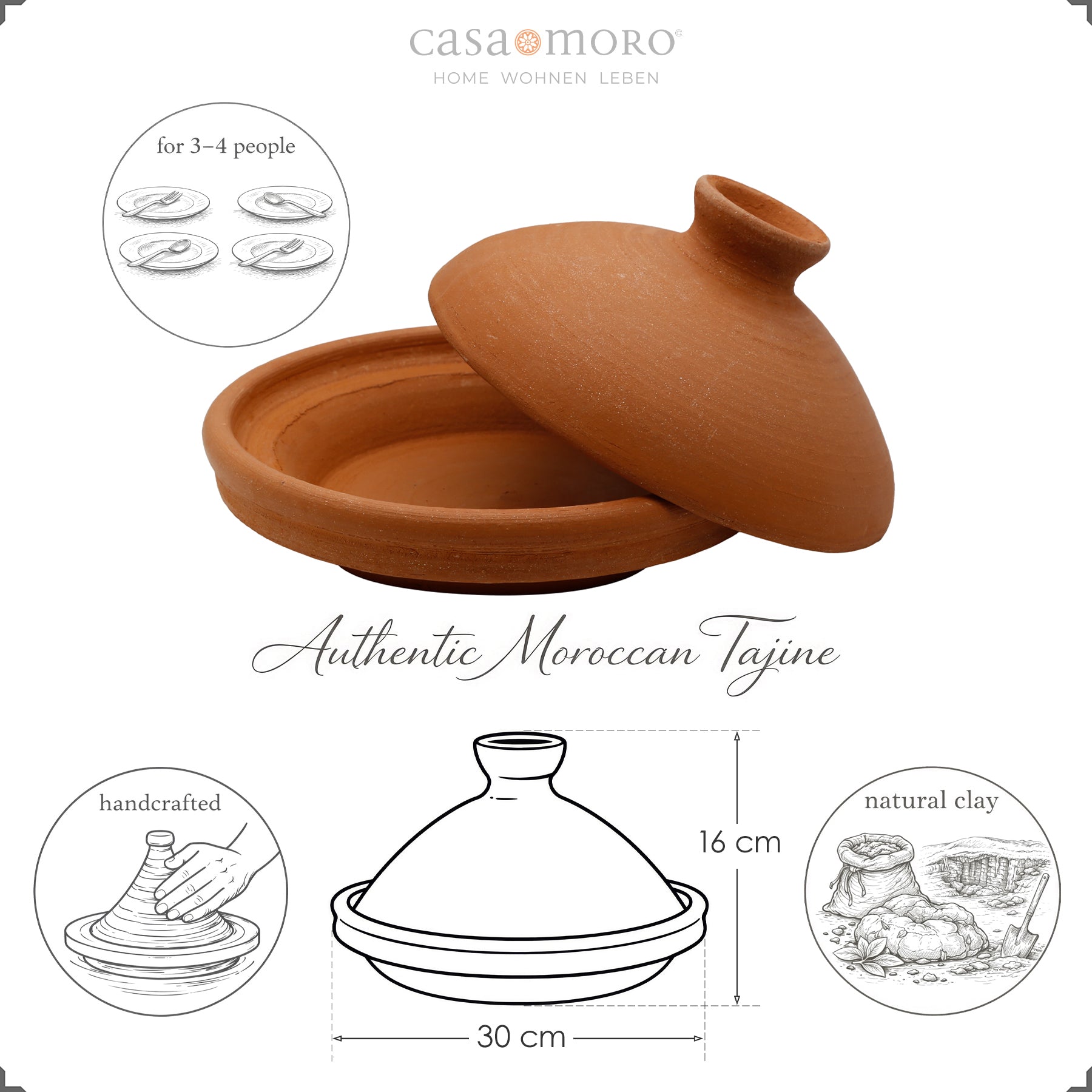 Tagine Schmortopf – 30 cm | Für 3–4 Personen, naturbelassen aus Ton und unglasiert